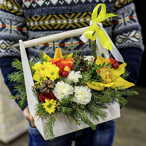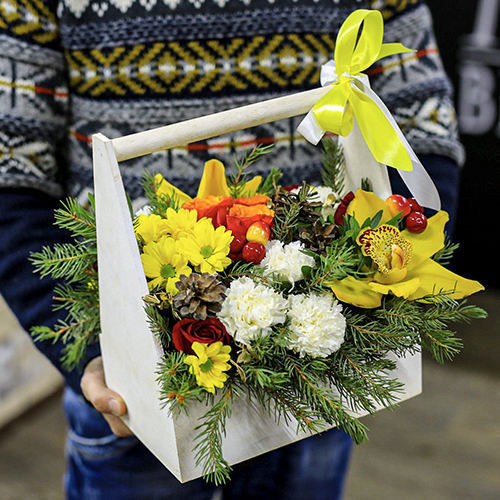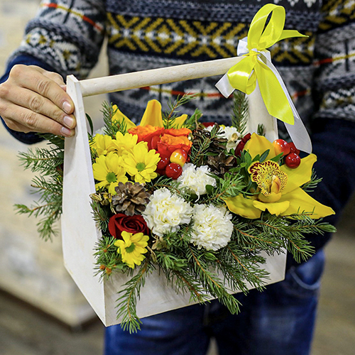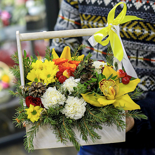 Зимняя композиция с орхидеями и гвоздикой