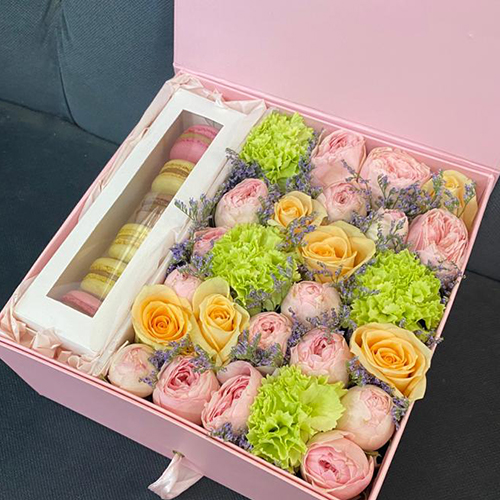 Сладкий сюрприз с пионовидными розами (25 см)