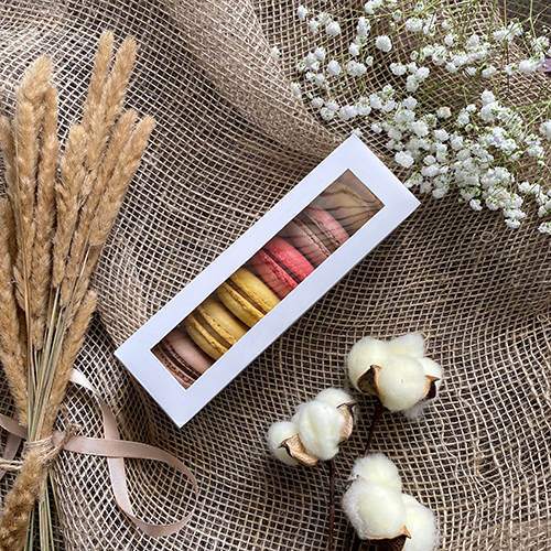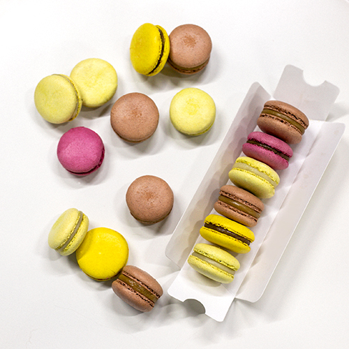 - Макарун ваниль: вода, сахар, соль, яйцо, миндальная мука, краситель пищевой, сливки, какао, масло сливочное, пектин, стручок бурбонской ванили.