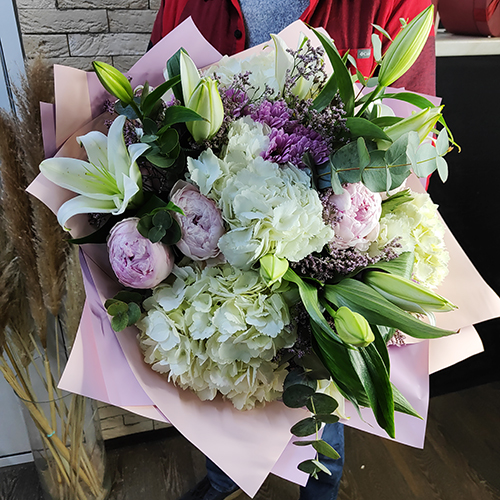 Заказанный букет вы можете забрать у нас в магазине по адресу: Москва: ул. Большая Семеновская 11с3 - круглосуточно!