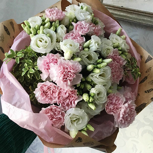 Букет нежных диантусов и эустом