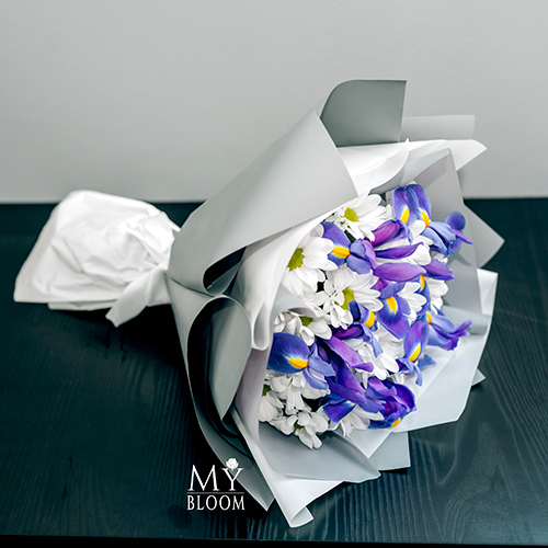 Букет из ирисов и хризантем