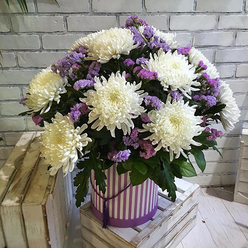 Огоромная шляпная коробка с хризантемами
