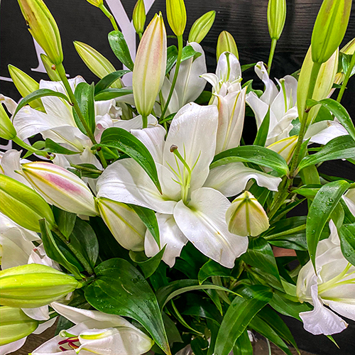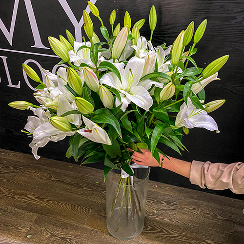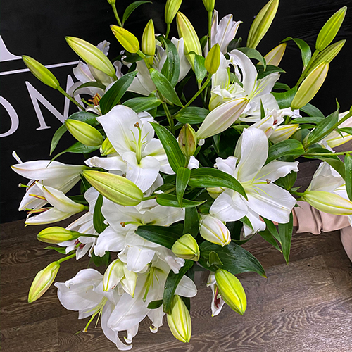 Букет 9 белых восточных лилий (80 см)
