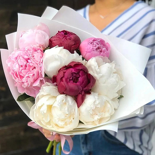 Букет микс пионов 9 шт
