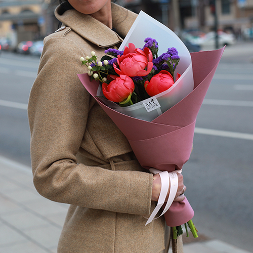 Букет пионов Корал Сью