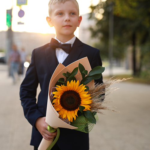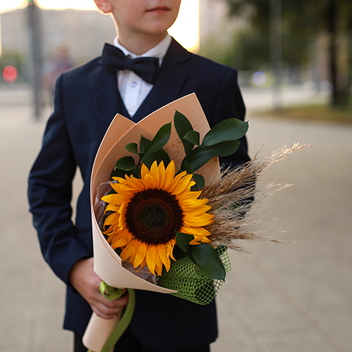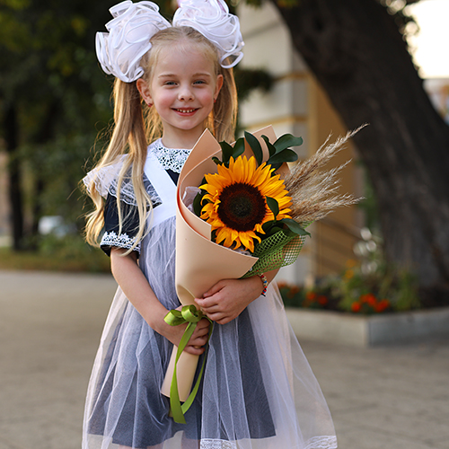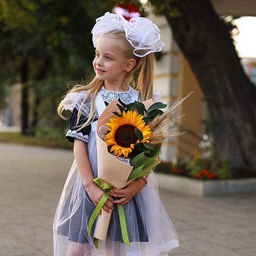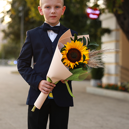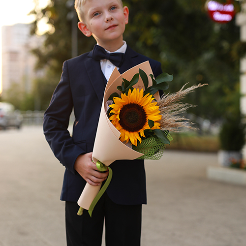 Букет с подсолнухом "В первый класс"