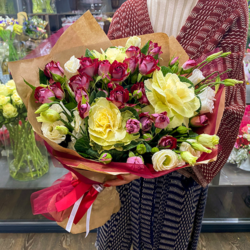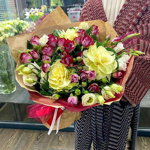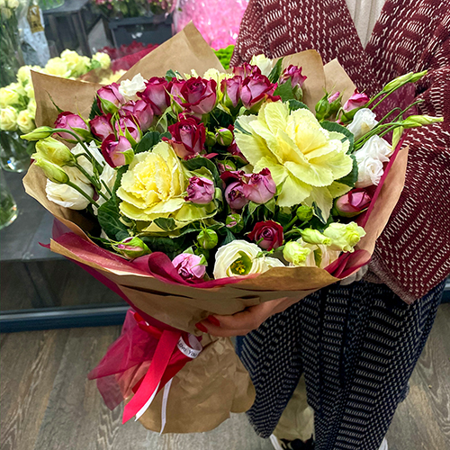 Заказанный букет вы можете забрать у нас в магазине по адресу: Москва: ул. Большая Семеновская 11с3 - круглосуточно!