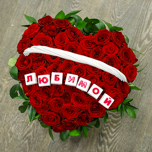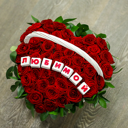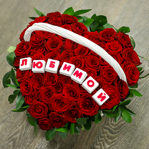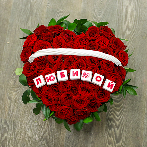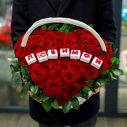 Корзина крупных красных роз Любимой (35 см)