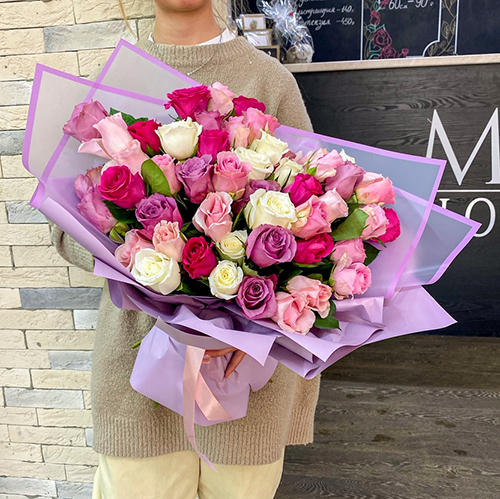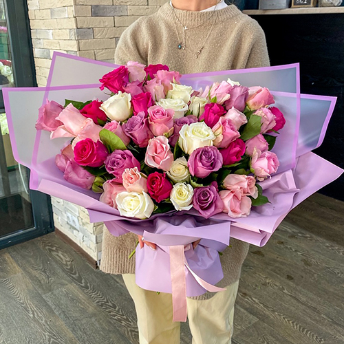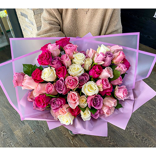Букет 51 роза микс "Все оттенки нежности" (50 см)