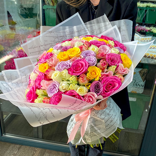 Букет 101 роза микс Bubble gum (50 см)