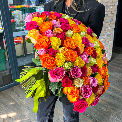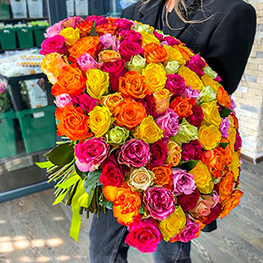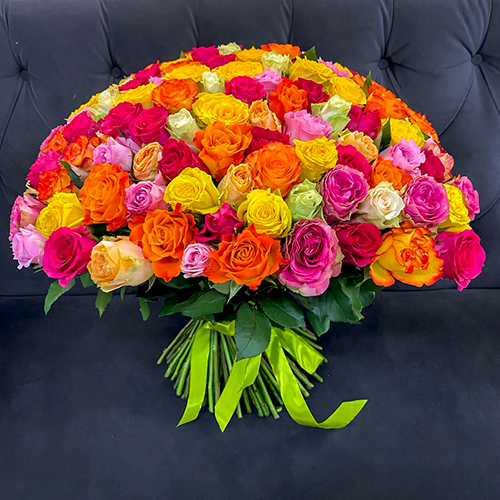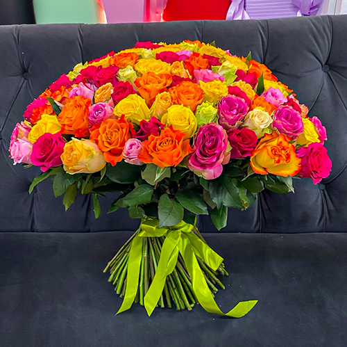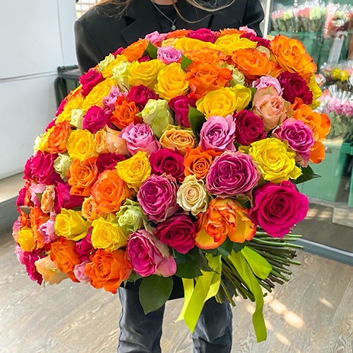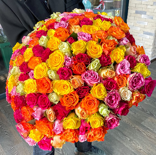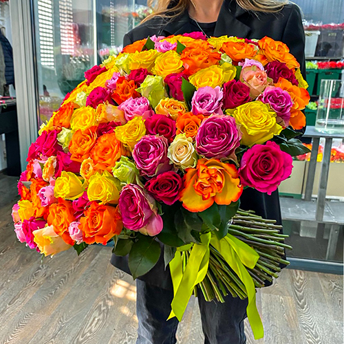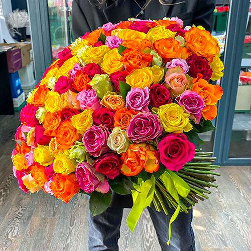 Букет 151 роза сочный микс (50 см)