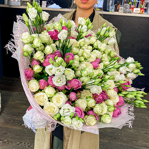 Заказанный букет вы можете забрать у нас в магазине по адресу: Москва: ул. Большая Семеновская 11с3 - круглосуточно!
