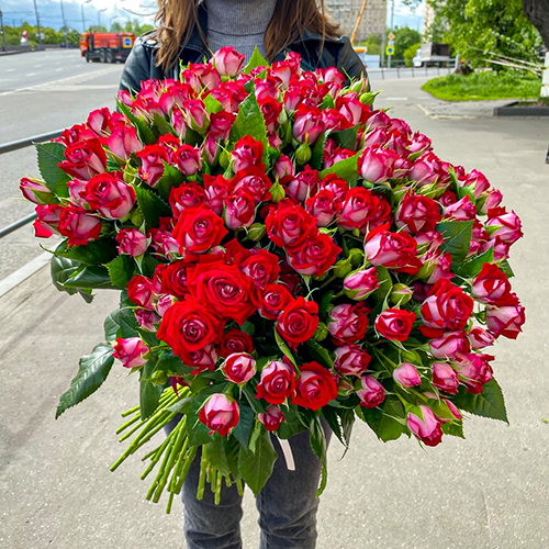 Охапка из 51 красной кустовой розы (55 см)