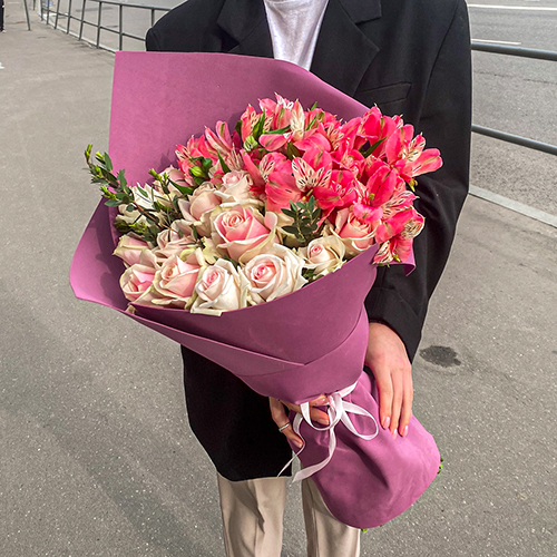 Заказанный букет вы можете забрать у нас в магазине по адресу: Москва: ул. Большая Семеновская 11с3 - круглосуточно!