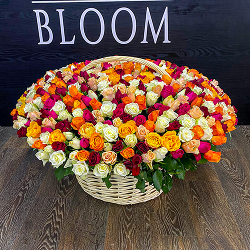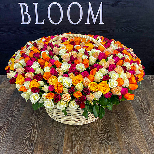 Шикарная корзина 501 роза микс (50 см х 70 см)