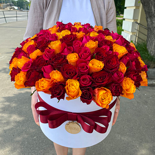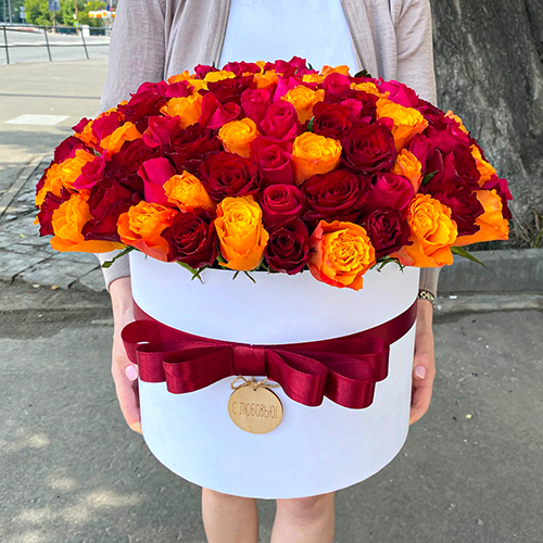 151 роза в огромной шляпной коробке (50 см)