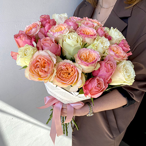Букет из пионовидных роз Французкий поцелуй (50 см)