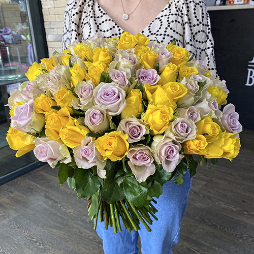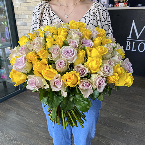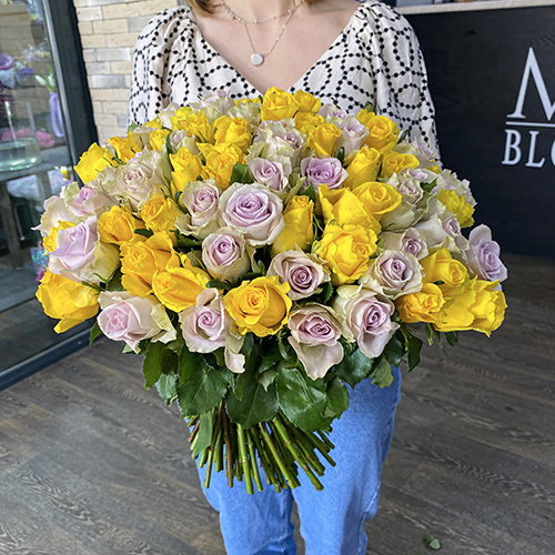 101 роза лилово-лимонный микс (40 см)