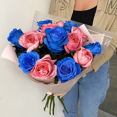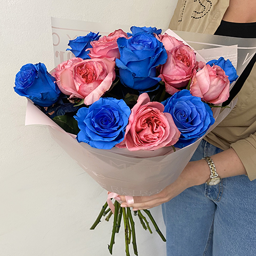 Микс синих и розовых роз (60 см)
