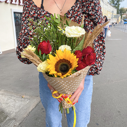 Заказанный букет вы можете забрать у нас в магазине по адресу: Москва: ул. Большая Семеновская 11с3 - круглосуточно!