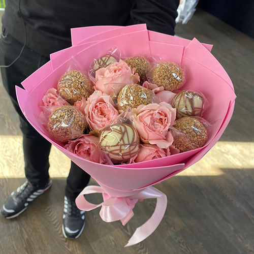 Сливочно-шоколадные кейк попсы с пионовидными розами (40 см)