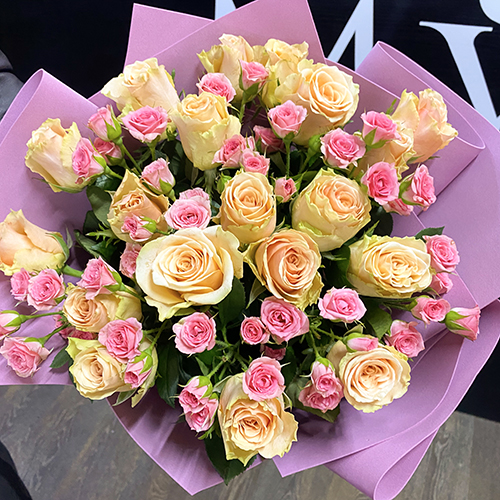 Букет кустовых и садовых роз (50 см)