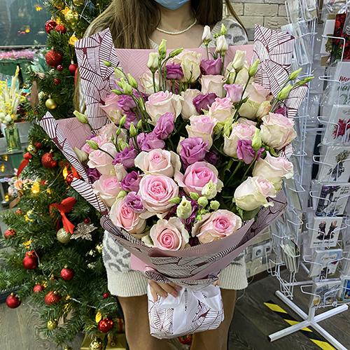 Букет роз и эустом Лия