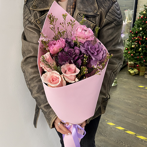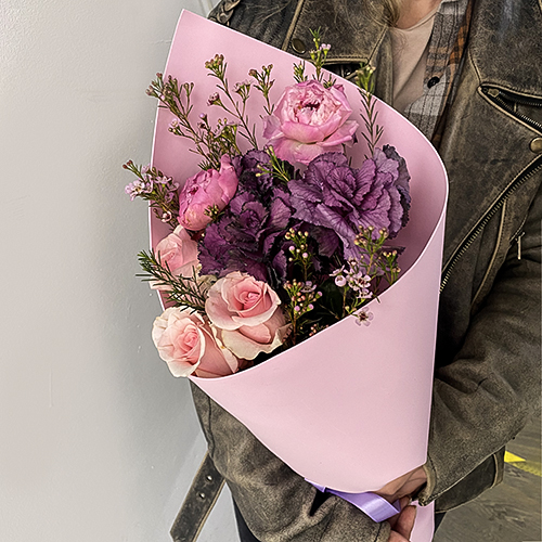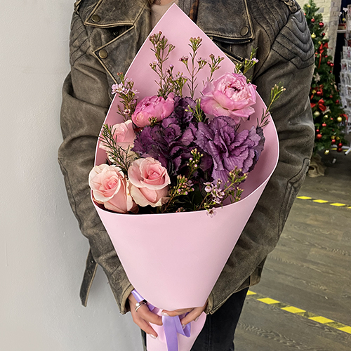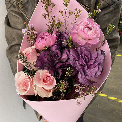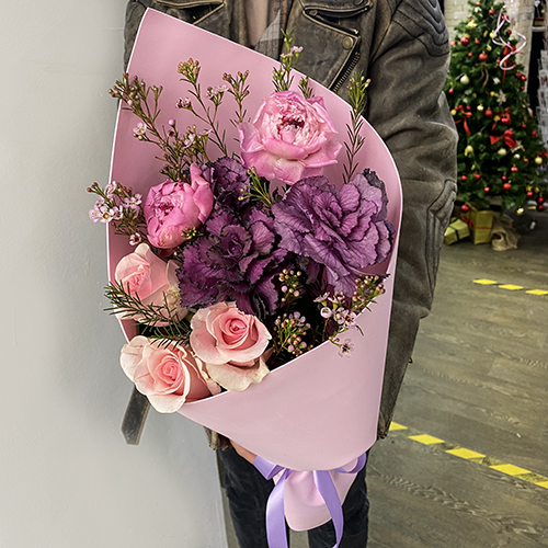 Букет из пионов, брассики и роз