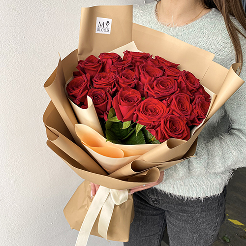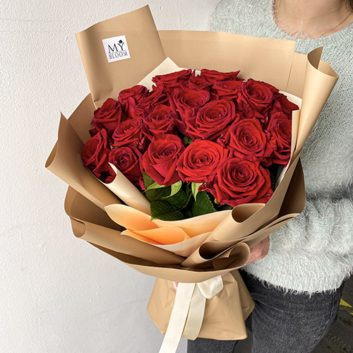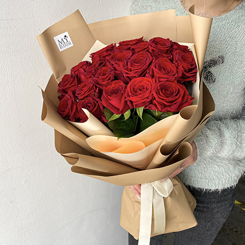 Букет 21 красная роза Ред Наоми (50см)