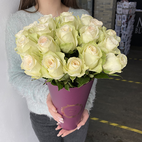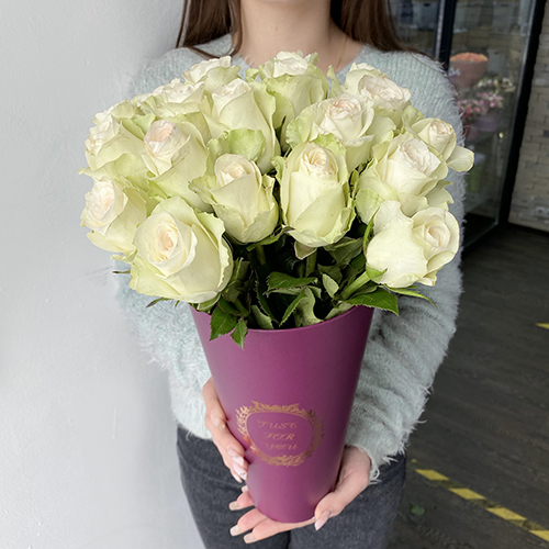 19 белых роз Кения в конусе