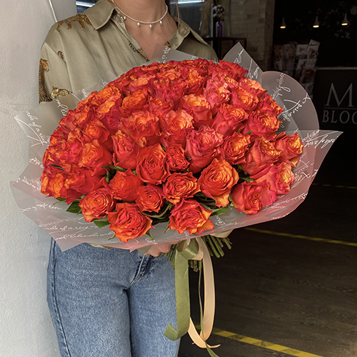 Букет 75 огненных роз (40 см)