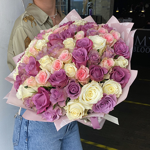 Букет 75 роз нежный микс (40 см)
