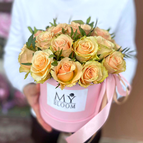 Персиковые розы в шляпной коробке