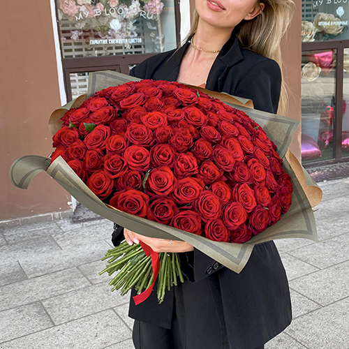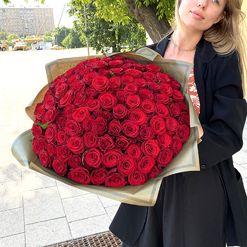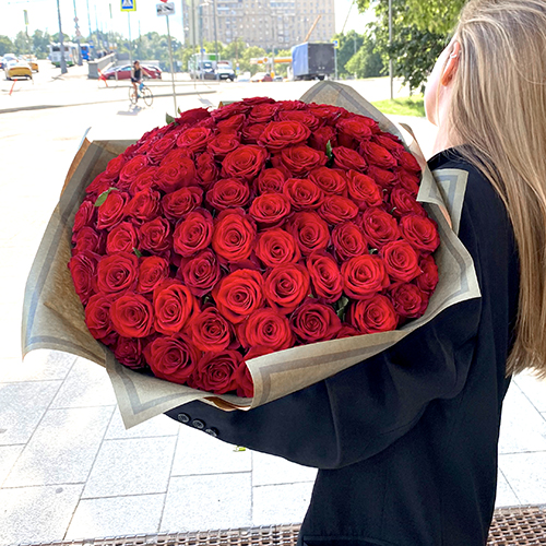 Букет 101 Подмосковная красная роза (50 см)