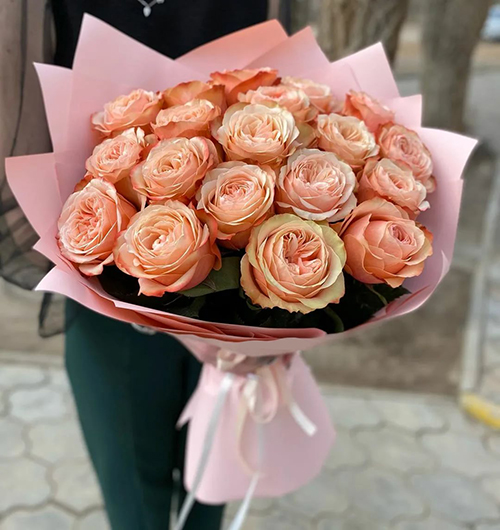 Букет 19 пионовидных роз Эквадор сорта Кахала (70см)