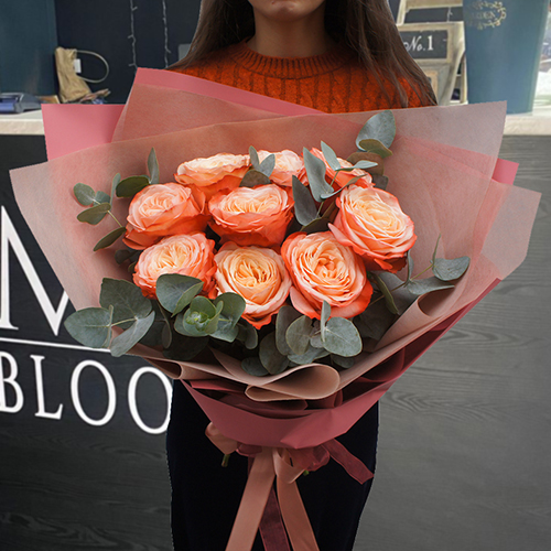 Букет из роз Эквадор Кахала с эвкалиптом
