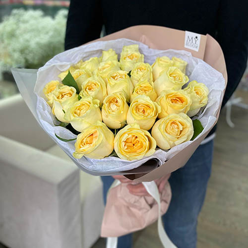 Букет из 25 Кенийских пионовидных кремовых роз (40 см)