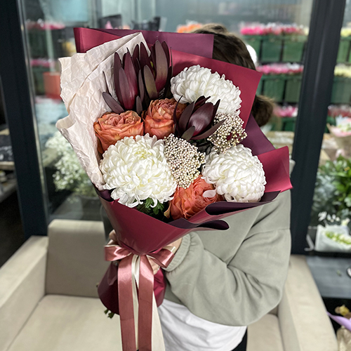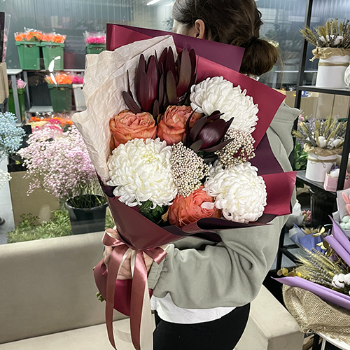 Заказанный букет вы можете забрать у нас в магазине по адресу: Москва: ул. Большая Семеновская 11с3 - круглосуточно!