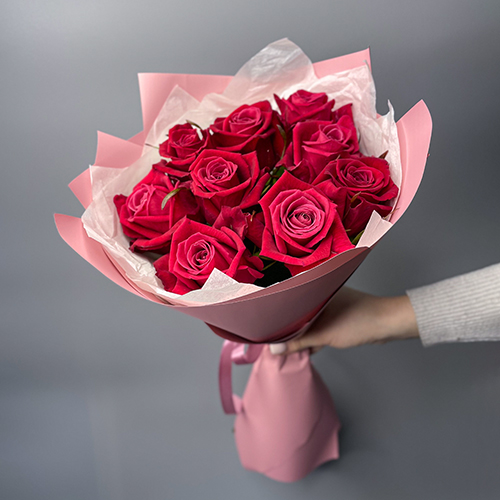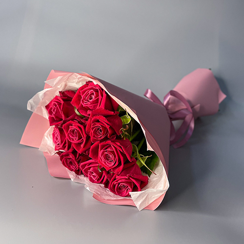 Букет 9 малиновых роз (50 см)