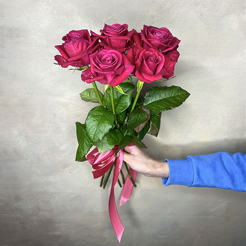 Букетик 5 малиновых розочек (50 см)