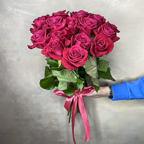 Букет из 15 малиновых розочек (50 см)