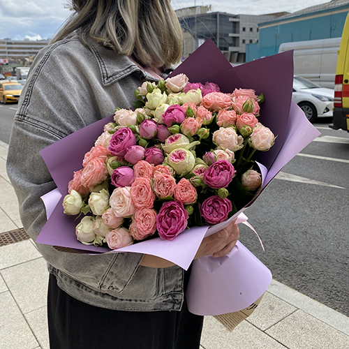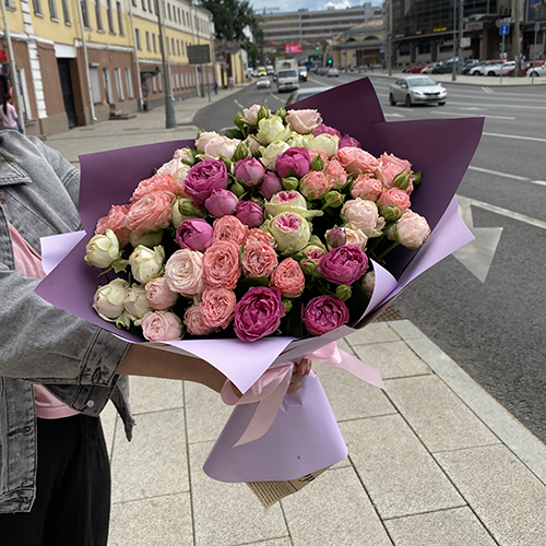 Заказанный букет вы можете забрать у нас в магазине по адресу: Москва: ул. Большая Семеновская 11с3 - круглосуточно!