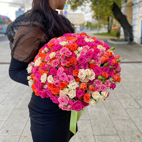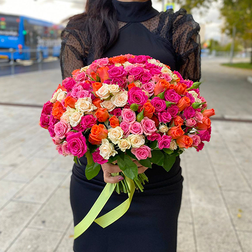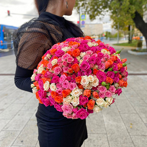 Букет 101 кустовая роза Аморетто (30 см)