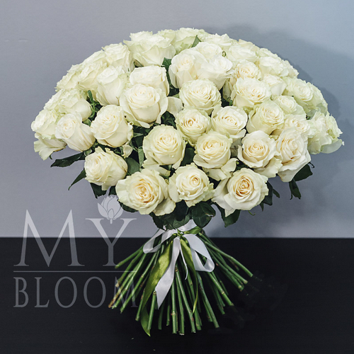Букет 75 белых роз (70 см)