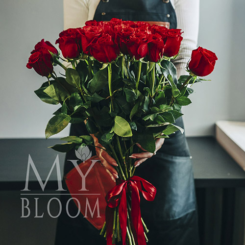 Букет из 25 красных роз (Эквадор) (60 см)