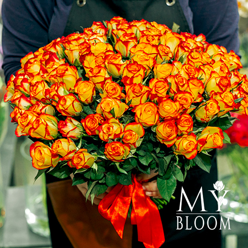 Букет 101 огненная роза (30 см)