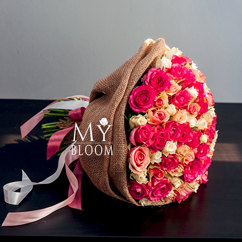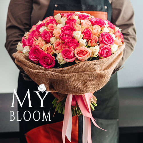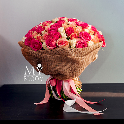 Букет 101 роза розовый микс (40 см)