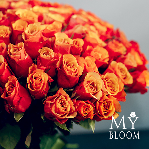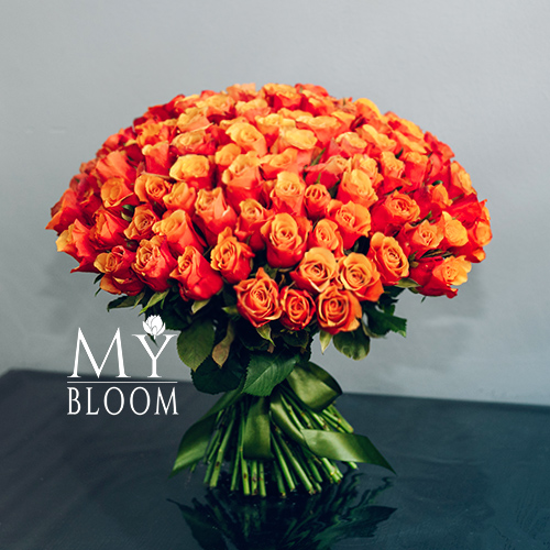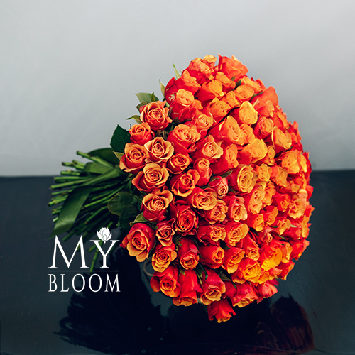 Букет 101 розово-желтая двухцветная роза (40 см)