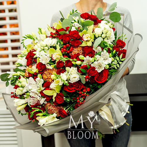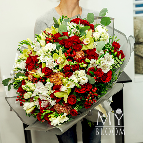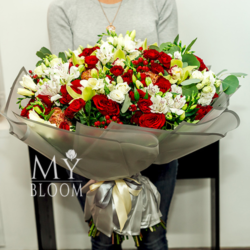 Заказанный букет вы можете забрать у нас в магазине по адресу: Москва: ул. Большая Семеновская 11с3 - круглосуточно!